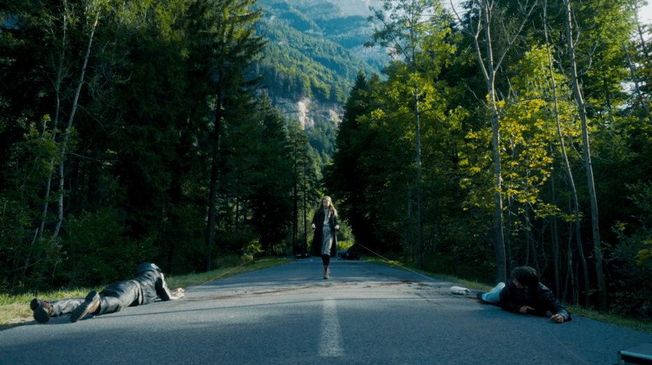 Barbara (Eve Connolly) is the “Mobile Seamstress” of a quaint Swiss hamlet. She traverses the town’s winding roads in a tiny car with a giant bobbin on the back as she hurries to a wedding dress fitting. While rushing back to her shop to fetch a replacement button, she runs across a chaotic scene: two injured men, two crashed motorcycles, two guns, and one obviously valuable briefcase lie in the middle of the road. The way she sees it, Barbara has three choices: “Perfect Crime,” “Call Police,” and “Drive Away,” which serve as chapter headings for the segments that follow. The rest of the film explores how each choice works out for Barbara as she tackles her escalating problems with bizarre yet compelling coping mechanisms inherited and adapted from her life of strange isolation.